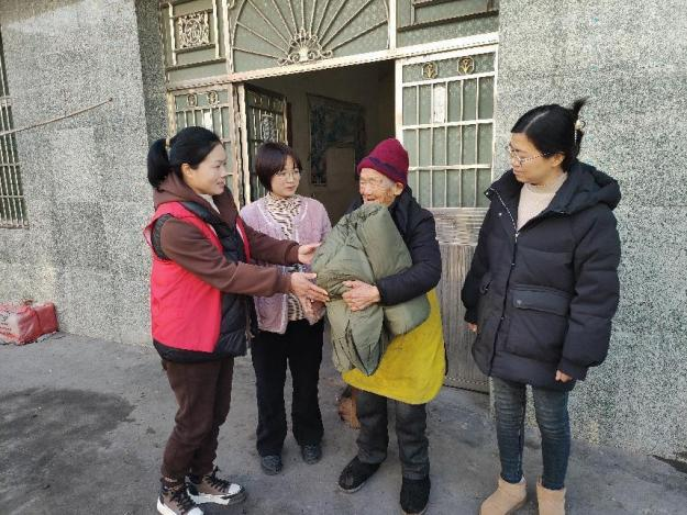 2024年1月4日,明珠村两委上门送救灾物资给独居老人。