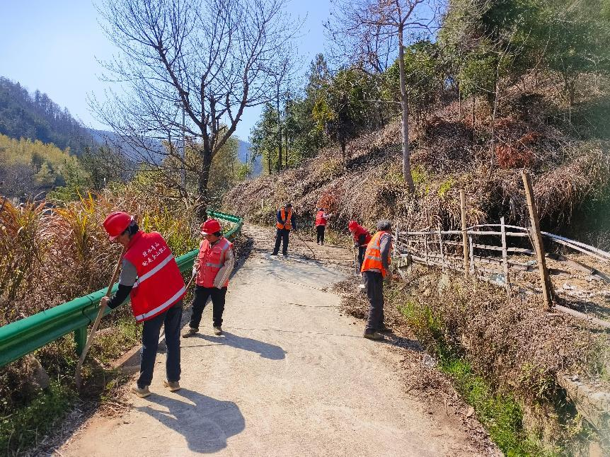 从3月17日开始,明珠村组织志愿者、护林员、环卫工对全村范围内的道路进行养护,清扫路面、清理边沟。