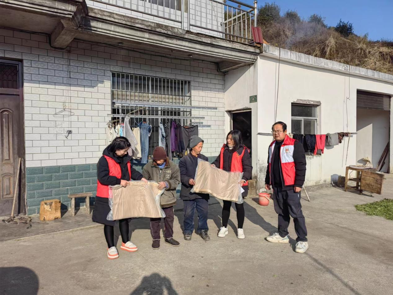 2023年12月21日,玉珠村组织志愿者为孤寡老人和困难家庭发放冬春救灾物资。
