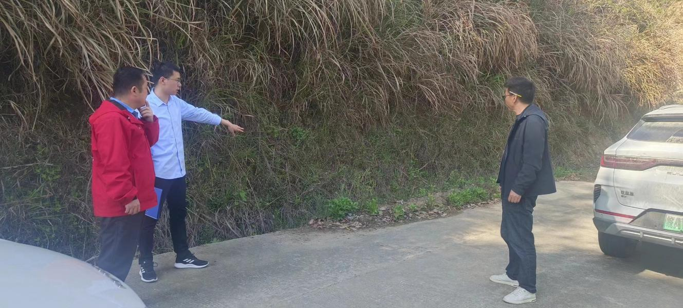 2024年4月10日,镇政府朱部长一行对桐山村道路维护进行考核。