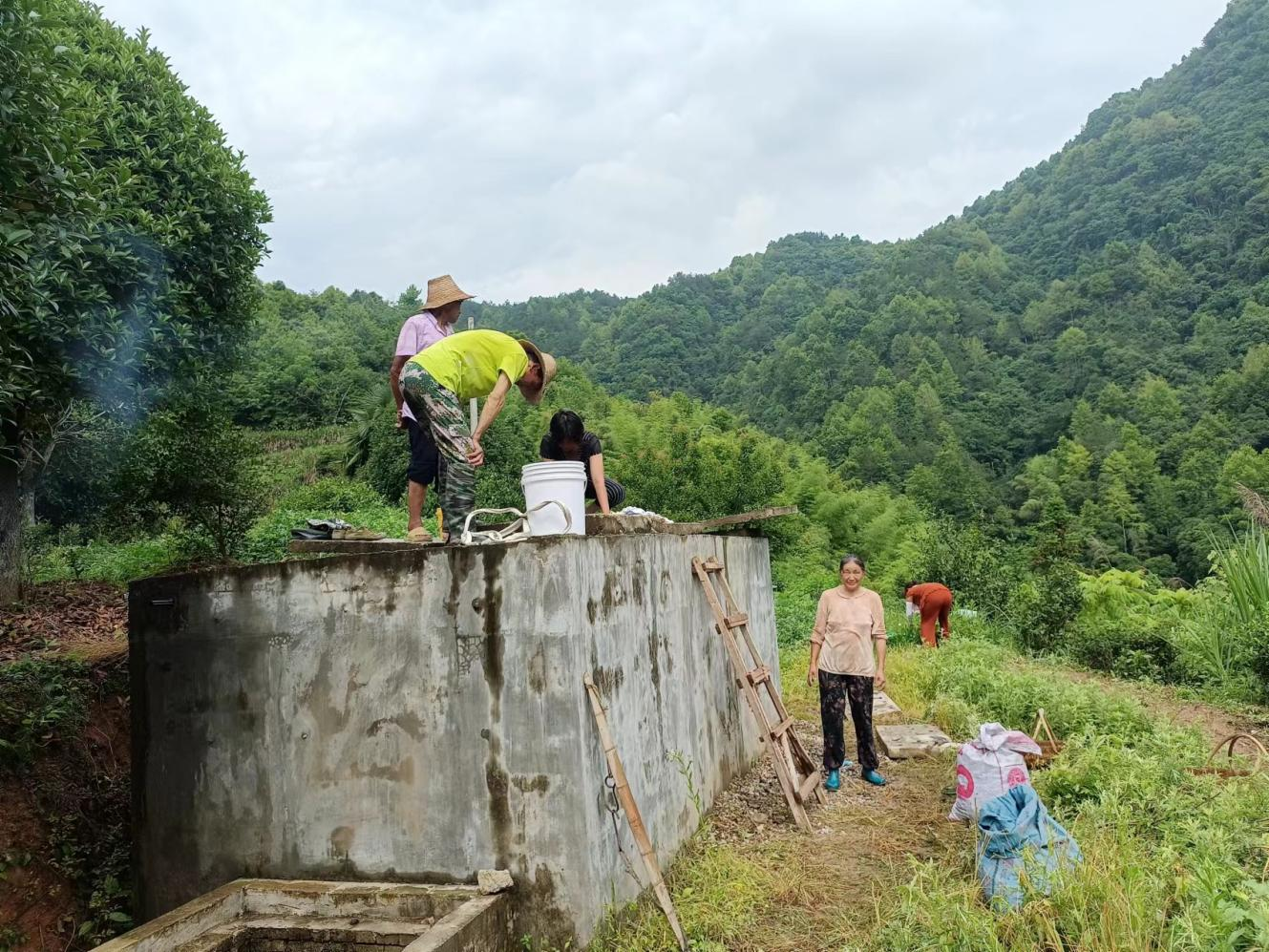 2024年6月21日,桐山村先锋组对饮水池进行全方位清理。