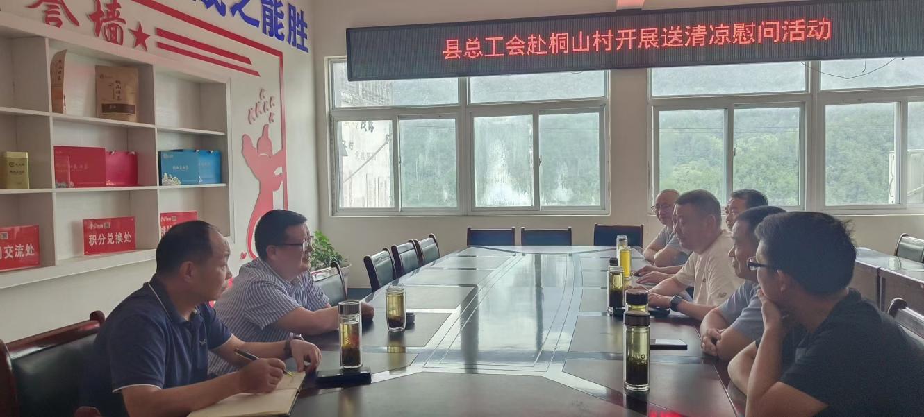 2024年8月27日, 炎炎夏日太湖县总工会党组书记、常务副主席 赵健与桐山村驻村工作队及其村两委成员进行了座谈,了解当前乡村振兴工作的进展情况以及近期驻村工作队员的工作、生活、食宿情况,同时,向炎热夏日依然坚守岗位的驻村工队及其桐山村两委成员表示亲切慰问,叮嘱一定要注意防暑降温,劳逸结合,并鼓励大家继续发扬顽强拼搏和求真务实的工作作风,以更加饱满的热情投身工作。持续高效开展帮扶工作做好后备力量。