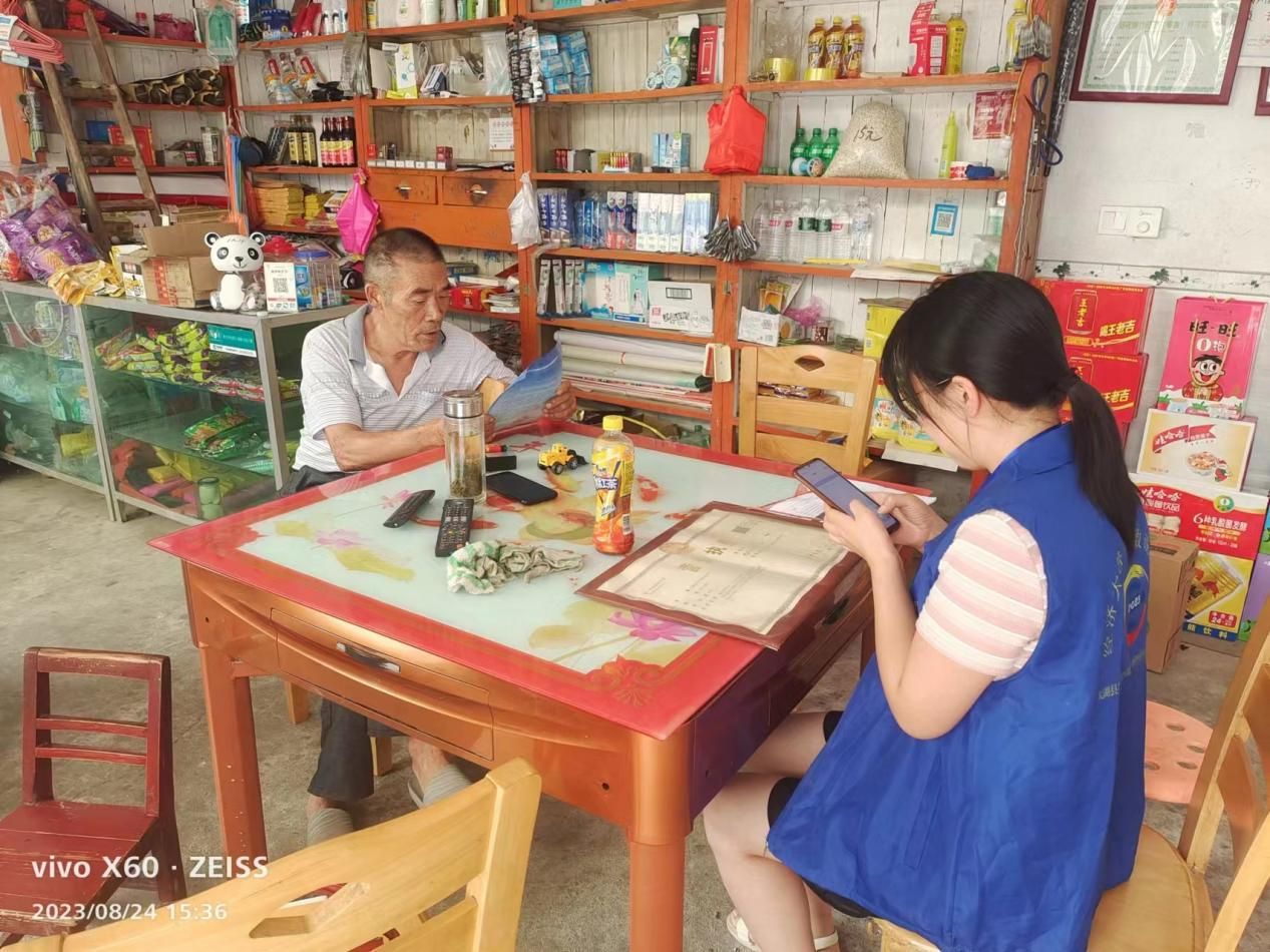2023年9月2日,吴俊村开展全国第五次经济普查,提高辖区商户、企业对全国第五次经济普查的知晓率,营造支持经济普查的良好氛围?;疃?,普查员身穿经济普查的蓝色马甲佩戴工作证穿梭在商户和企业中,询问店内所经营的情况,倡导居民理解支持和配合如实填写普查资料。