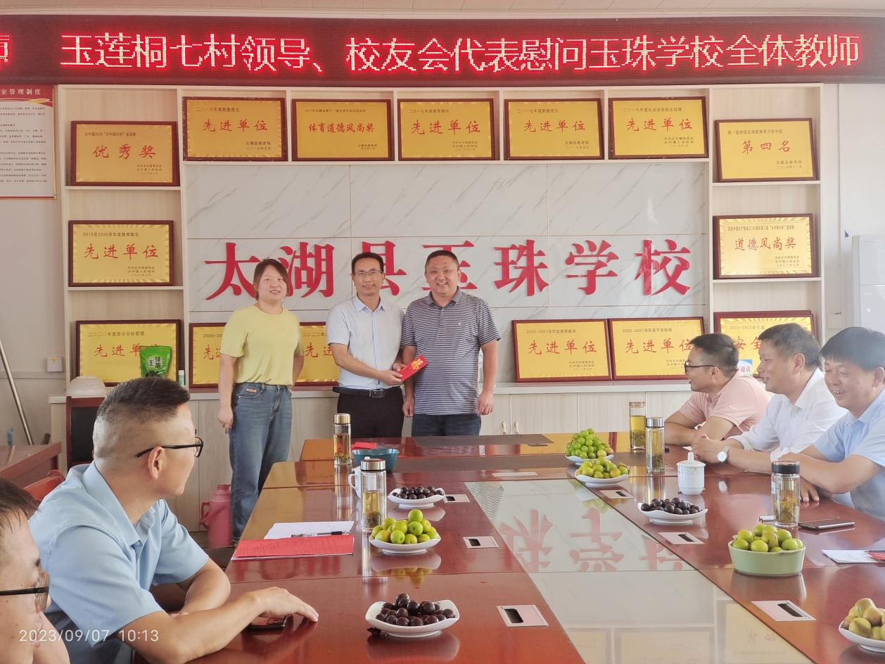 2023年9月7日,为庆祝第三十九个教师节,吴俊村同玉莲桐其他六个村领导、校友会代表慰问玉珠学校全体教师。