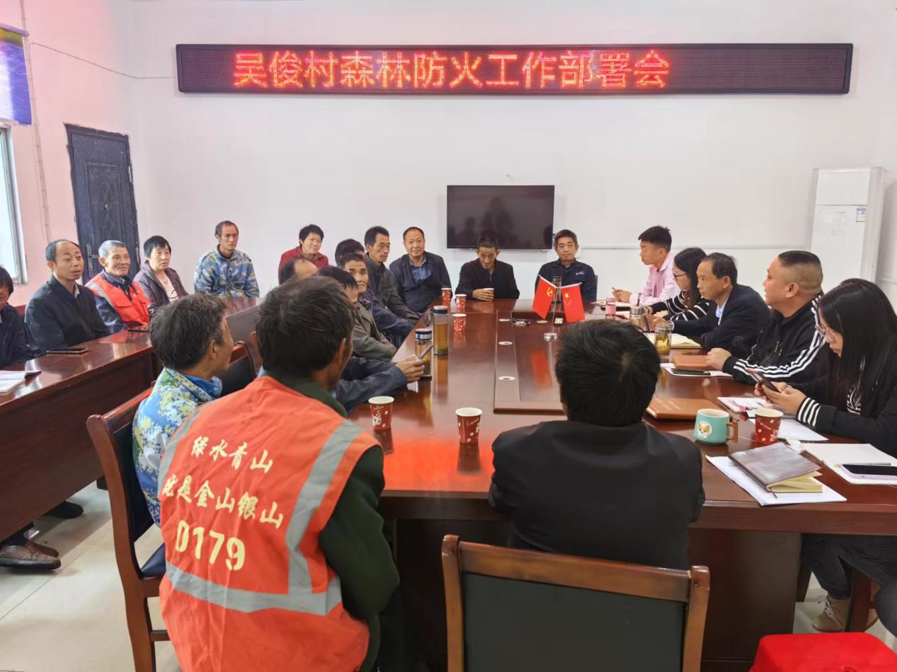 2023年10月7日,吴俊村召开森林防火工作部署会。现进入新一轮防火期,会上占志朋书记布置了3项重点工作并做了强调:一是生态护林员改聘情况;二是生态护林员包保区域情况;三是生态护林员值班情况。