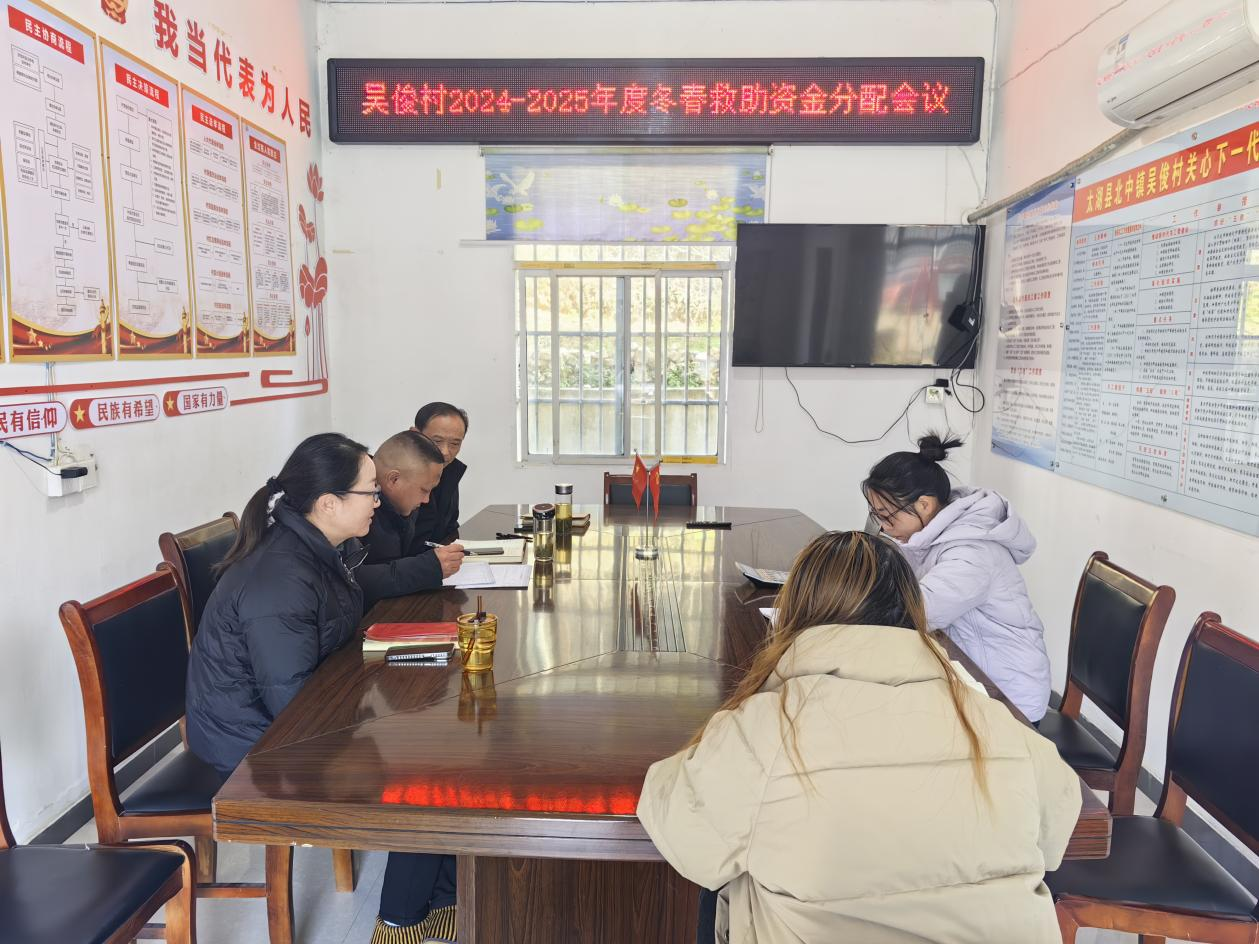 2025年1月2日,吴俊村召开2024-2025年度冬春救助资金分配会议,在会议中,一是保证公平公正分配,通过会议可以让分配过程透明化,明确救助资金的分配对象标准,如优先考虑受灾严重、生活困难的家庭等,防止资金分配不公、优亲厚友的情况发生。二是精准识别救助对象,大家积极讨论,结合受灾情况、家庭经济状况等因素,精准地确定哪些村民是最需要冬春救助资金的群体,确保资金能够真正帮助到生活受到灾害影响陷入困境的人。