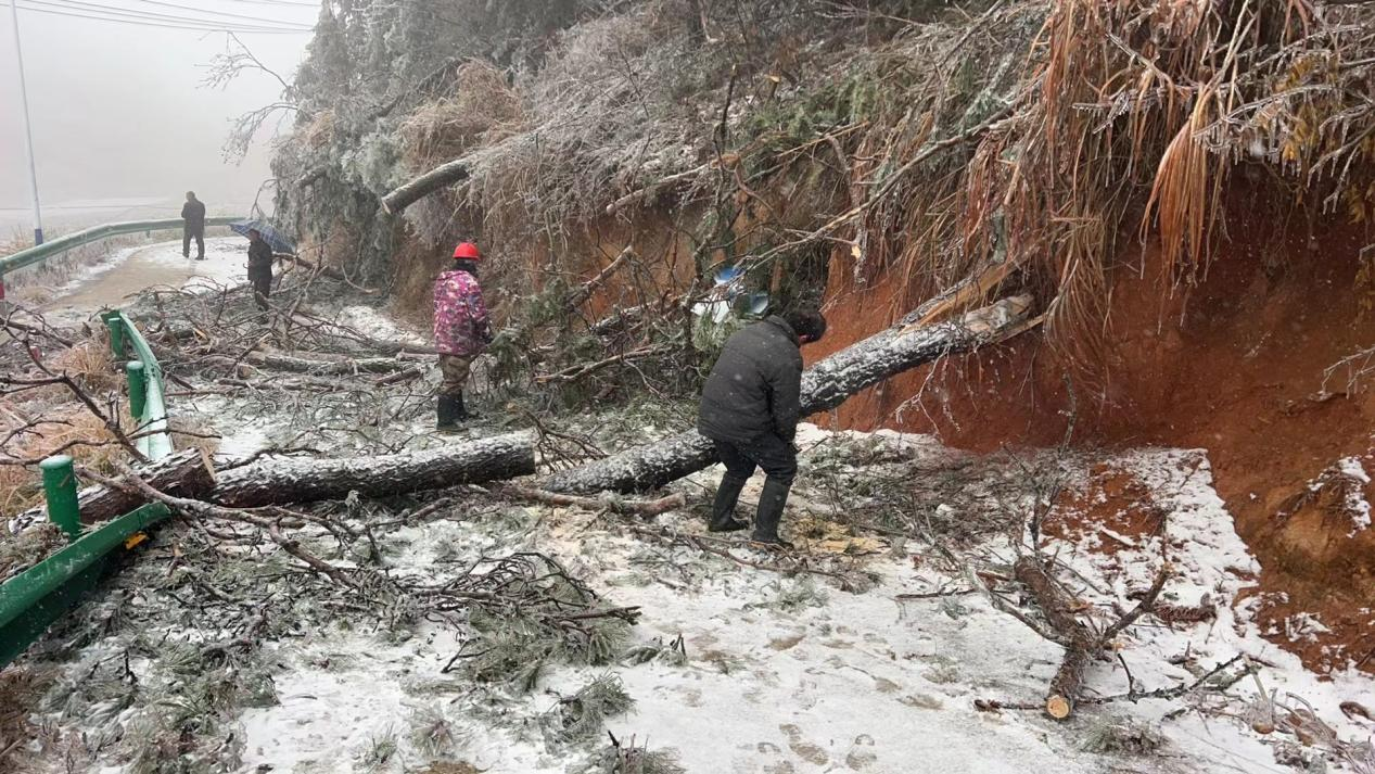 2024年2月4日,将军村开展冻雨天气路障清理工作。
