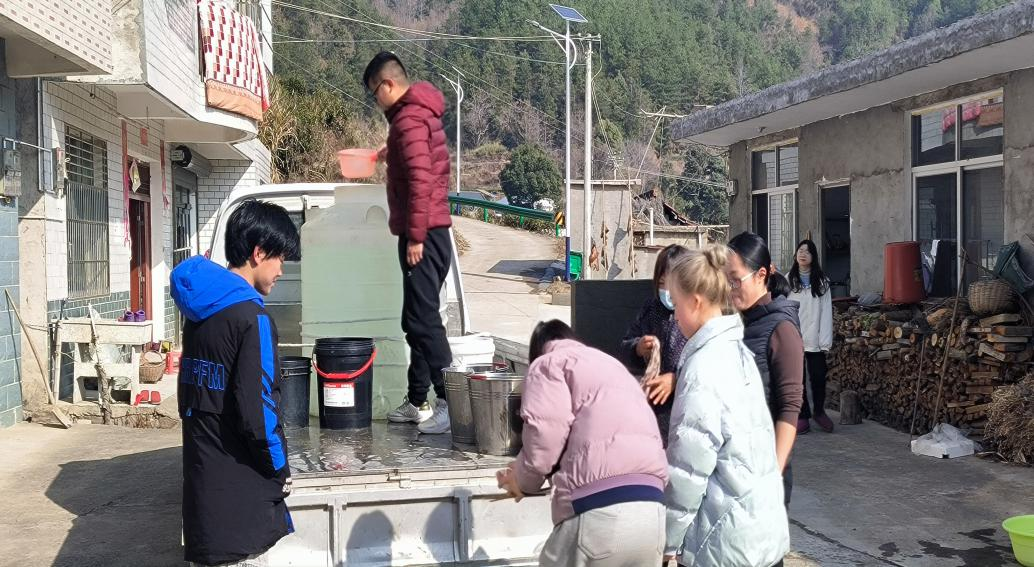 2023年1月8日,由于天气干旱导致多组村民无生活饮用水,花冲村两委为独居老人、留守老人送生活用水。