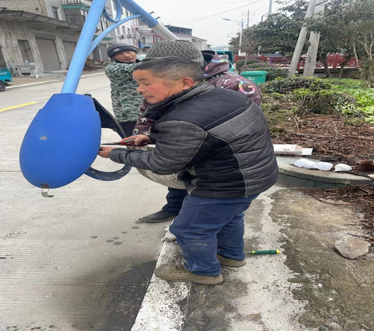 2024年2月7日,花冲村路灯维养员对全村路灯进行检修,确保路灯在春节期间无障碍。