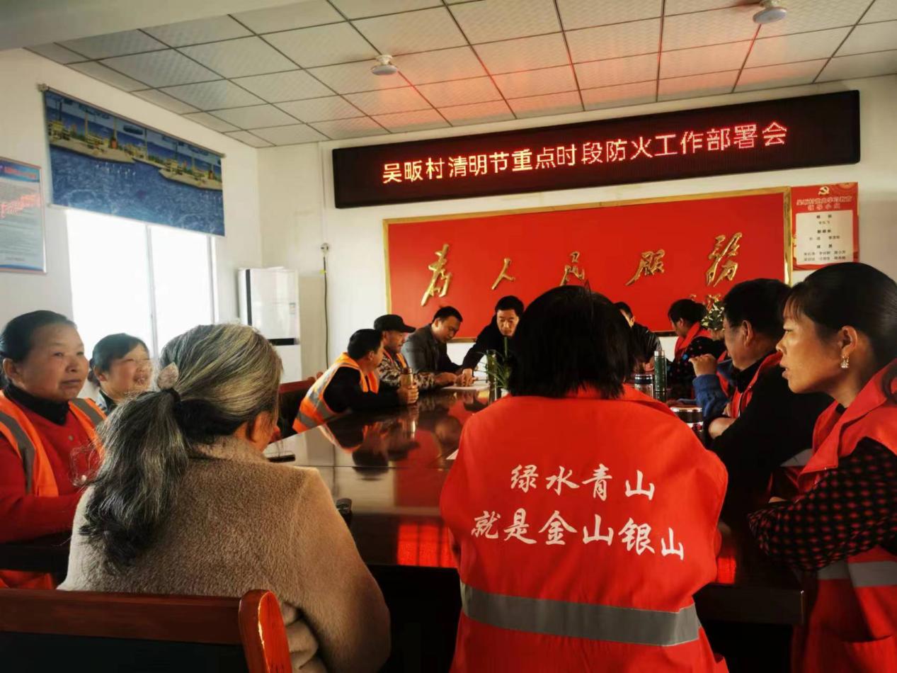 吴畈村严格落实文明祭祀工作方案,及时组织护林员召开“吴畈村清明节重点时段防火工作部署会”?;ち衷笔敌型窕芾恚制涸?。结合清明防火工作,宣传文明祭祀,通过“线上+线下”多种模式进行广泛宣传,关于禁用塑料花等不易降解祭祀用品倡议书。