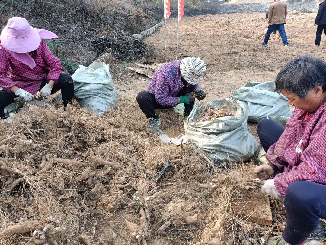 眼下,正是中药材玄参的成熟时期,在弥陀镇的百弥丰林中药材种植基地里,能看见挖掘机先把玄参块根翻挖起来,20多村民正忙碌地在药材地里收获玄参,大家分工合作,有序地进行着除草、翻地挖药、切块、装袋运输等工作,热闹非凡,洋溢着药材丰收的喜悦。