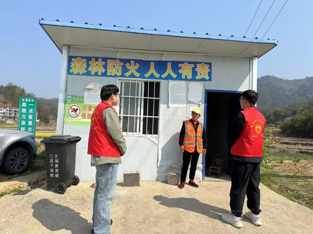志愿队员联合护林员、镇村干部在全镇重点林区、上山路口设立防火检查点驻守,对进山祭扫车辆和人员进行实名登记,严格管控火源携带。每日穿梭在田间地头巡查,对田间烧荒、焚香烧纸等行为及时劝导。通过悬挂防火横幅20条,使用方言版“防火顺口溜”小喇叭,在各村大广播巡回播放。针对老年群体,队员们入户讲解近年来森林火灾案例,推动移风易俗,倡导鲜花祭祀。