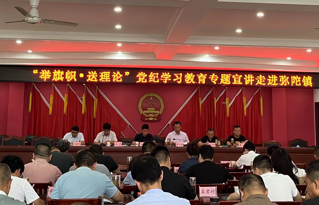 close6月27日,太湖县“举旗帜•送理论”党纪学习教育专题宣讲走进弥陀镇,县委宣讲团成员曹伟围绕党纪学习教育及《中国共产党纪律处分条例》进行专题宣讲解读。镇机关职工、镇直各单位、各村(社区)主要负责同志参加会议。