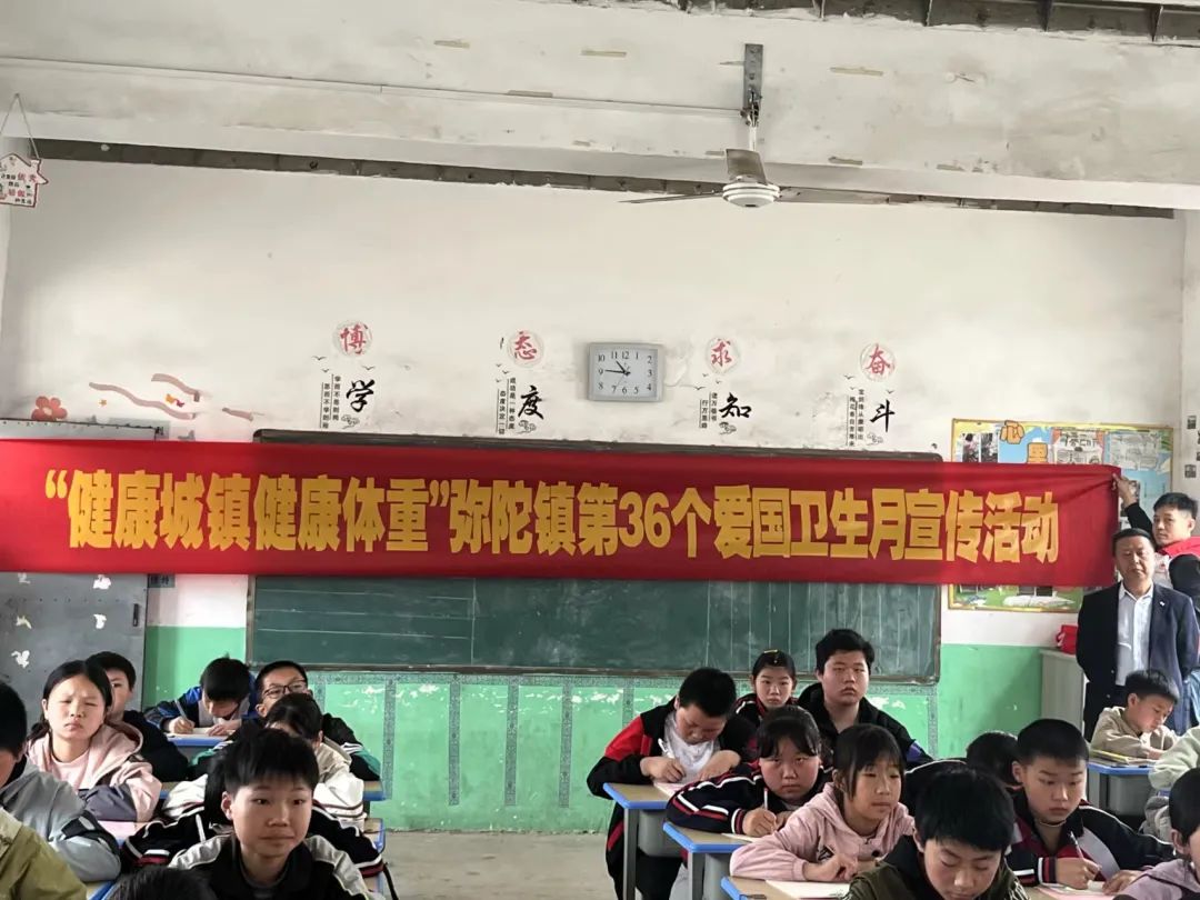 为进一步增加学生对爱国卫生运动专项知识的了解,提高参与爱国卫生专项行动的积极性,掌握科学健康生活方式。弥陀镇新时代文明实践所联合镇卫生院进校园开展“健康城镇 健康体重”卫生学习活动。工作人员深入浅出地讲解合理的膳食和健康的生活方式,并结合生活中经常发生的案例,耐心地教授了紧急呼救、基本救护方法等实用内容,为学生们全方位学习卫生健康知识,呼吁学生们养成良好的卫生习惯,适量运动增强体质,做好自身健康的第一责任人。