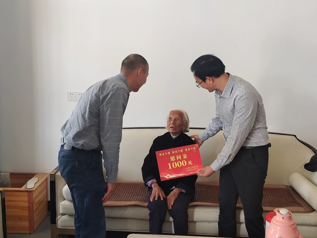 活动当天,对弥陀镇百岁老人进行走访慰问,薛爱华老人精神矍铄,看到来访的众人,脸上洋溢着幸福的笑容。慰问人员送上了慰问金,关切地询问老人的身体状况和日常生活情况。老人虽然年事已高,但思维清晰,热情与众人分享着生活趣事和长寿秘诀,现场气氛温馨融洽。