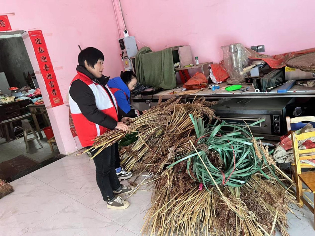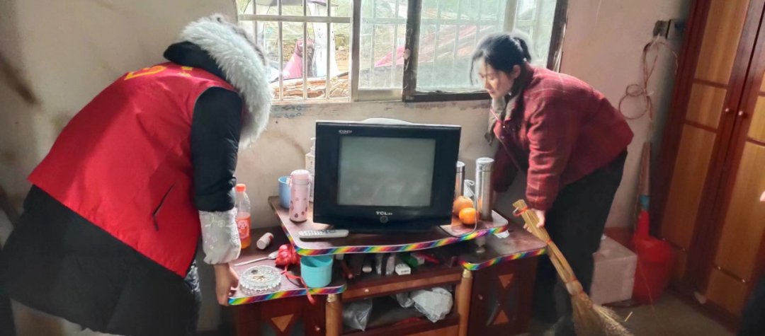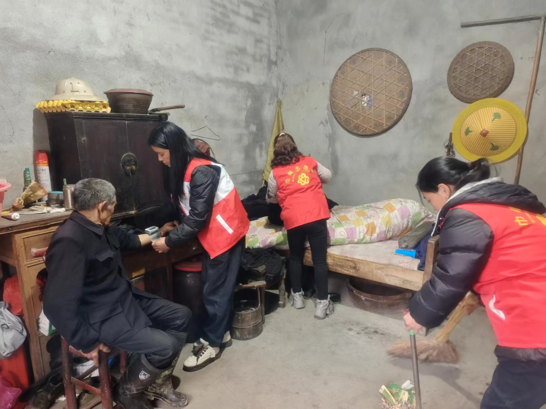 河口村组织志愿者到孤寡老人户上门服务,村两委成员来到五保老人胡优华家中,一边为老人测量血压,一边帮助老人打扫卫生,并嘱咐老人注意日常生活中的用火用电安全。