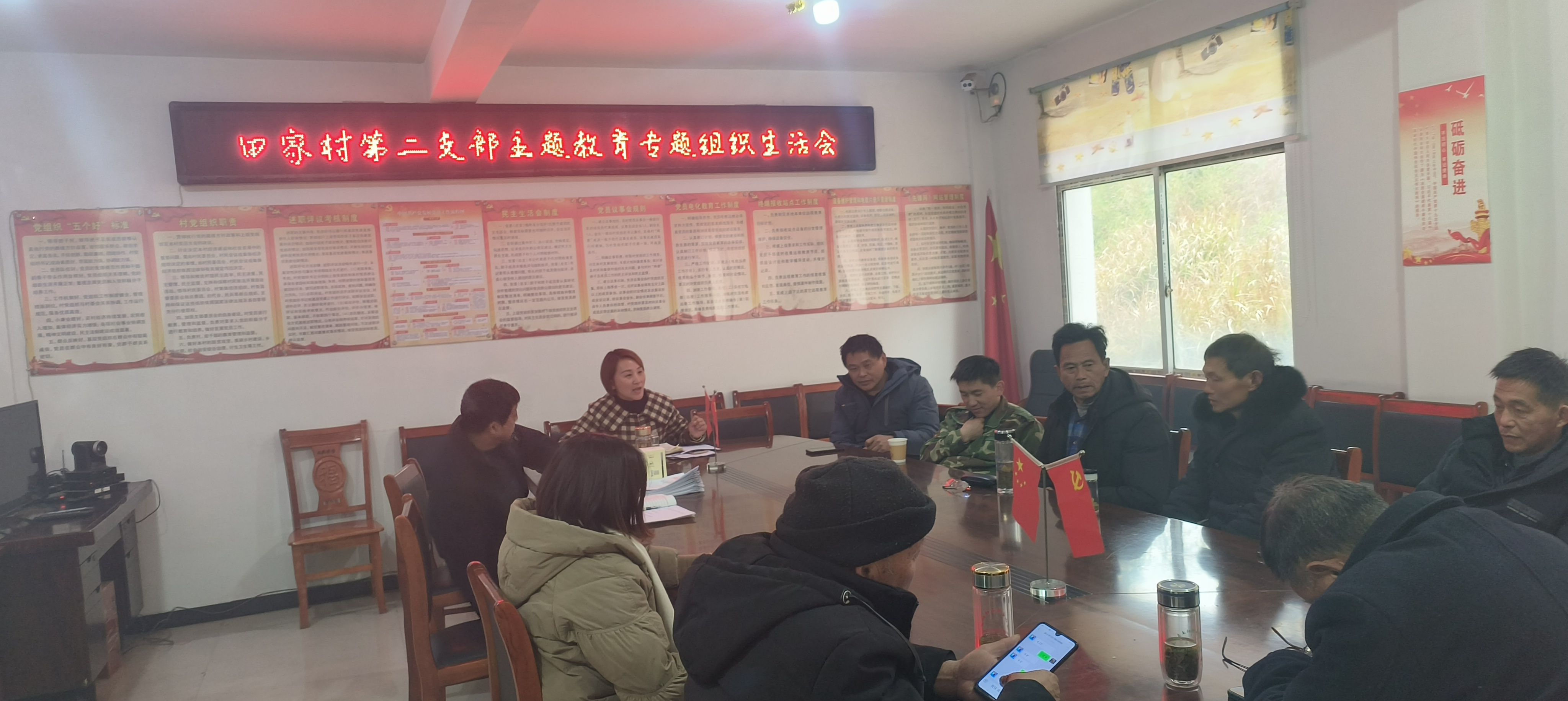2024年1月29日,田家村第二党支部召开主题教育专题生活会,在会上第二党支部党员就主题教育期间的学习、工作中存在的不足,开展批评和自我批评。当面指出参会党员存在的不足之处,共同促进,相互进步。在会上还开展了党员评议、田家村第二党支部支委班子评议、2023年新发展党员的评议工作。