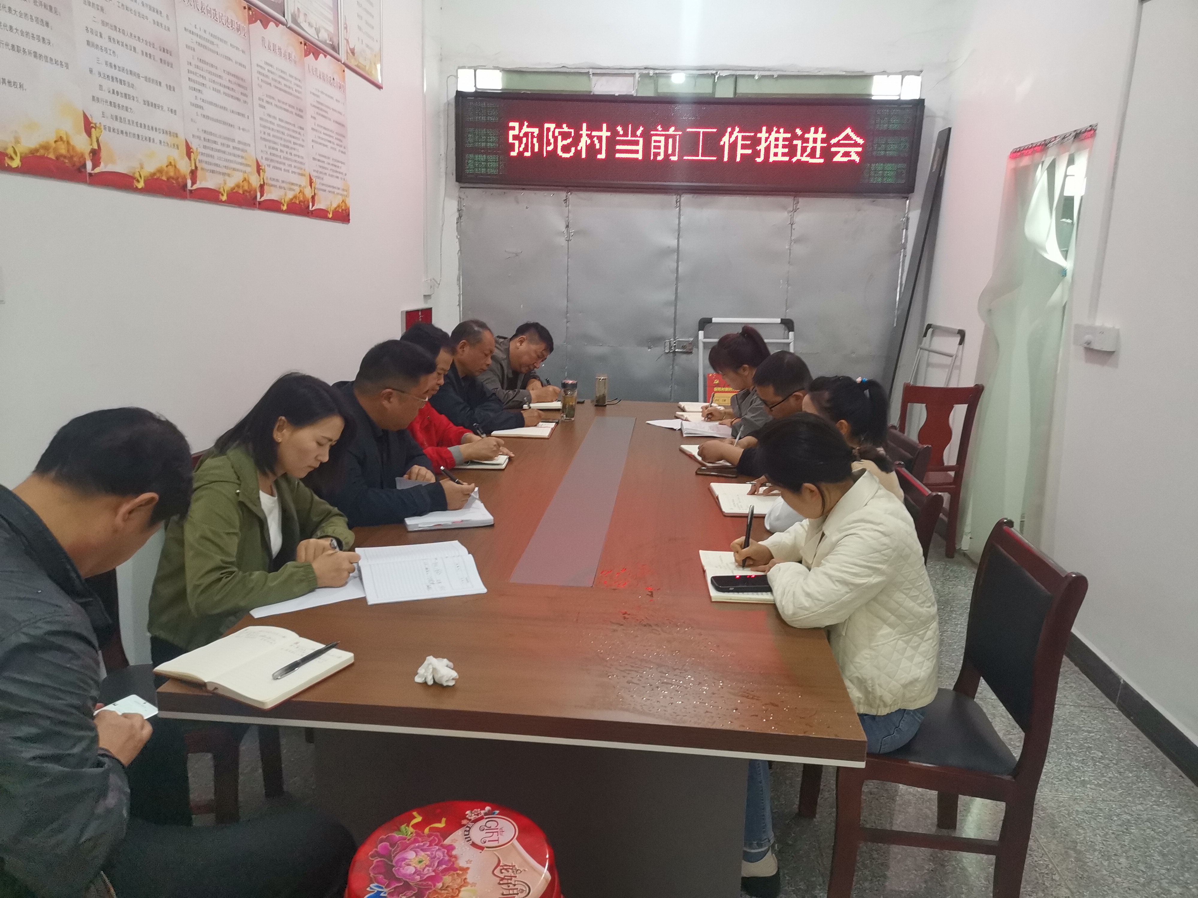 弥陀村全体工作成员及驻村工作队领导召开弥陀村当前工作推进会