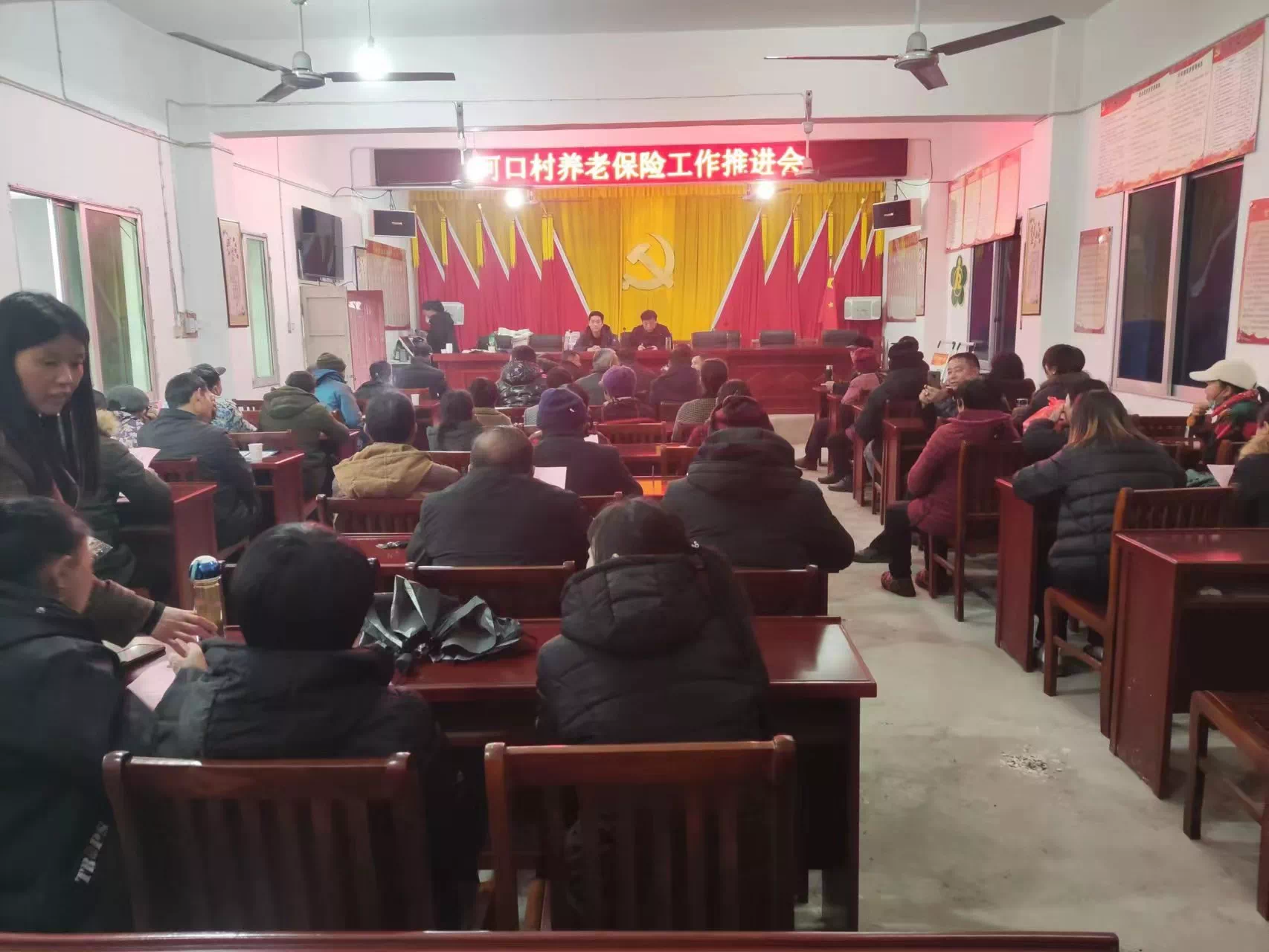河口村召开城乡居民养老保险工作推进会,宣传养老保险政策,引导村民积极参保,积极补缴。