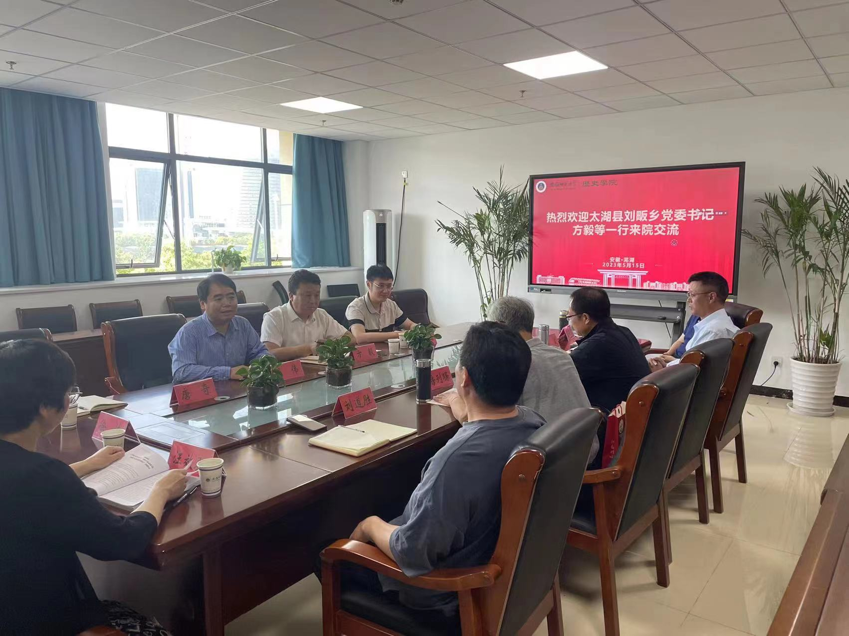 5月16日,方毅一行与安徽师范大学历史学院交流座谈,介绍了刘家畈会议的背景、内容,双方就刘家畈会议的重要意义和历史影响进行了深入交流?;嵘希躅蚕缦虬不帐Ψ洞笱Ю费г悍⒊鲅?,希望学院的专家学者组团到刘畈乡就刘家畈会议开展学术研讨。安徽师范大学历史学院表示,非常荣幸收到邀请,后续将加强与刘畈乡对接,提供相关帮助和智力支持。