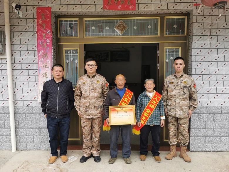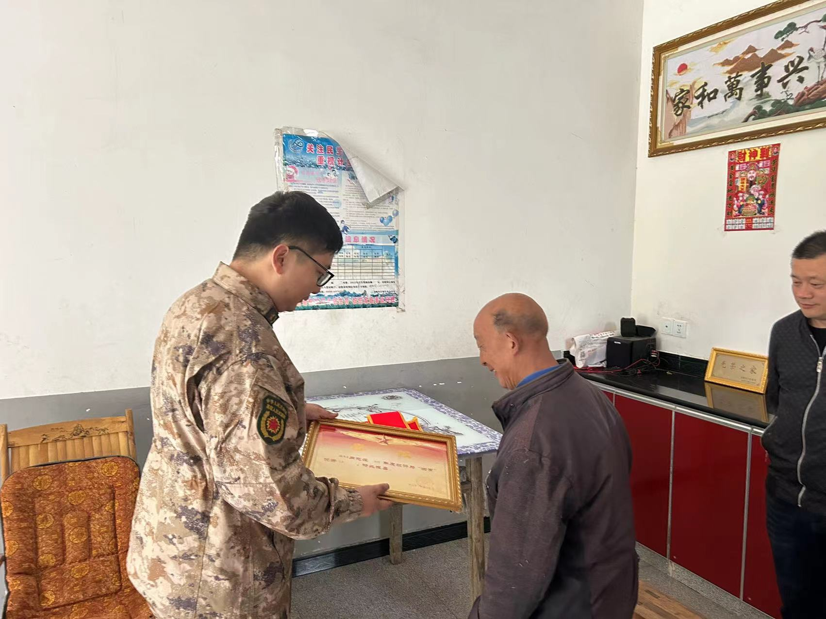 close为弘扬拥军优属的光荣传统,营造“一人参军,全家光荣”浓厚氛围,11月8日,刘畈乡武装部、退役军人服务站一行到刘畈乡洪河村为荣获“四有”优秀士兵的现役军人家庭送喜报,向他们表示热烈祝贺和崇高敬意。