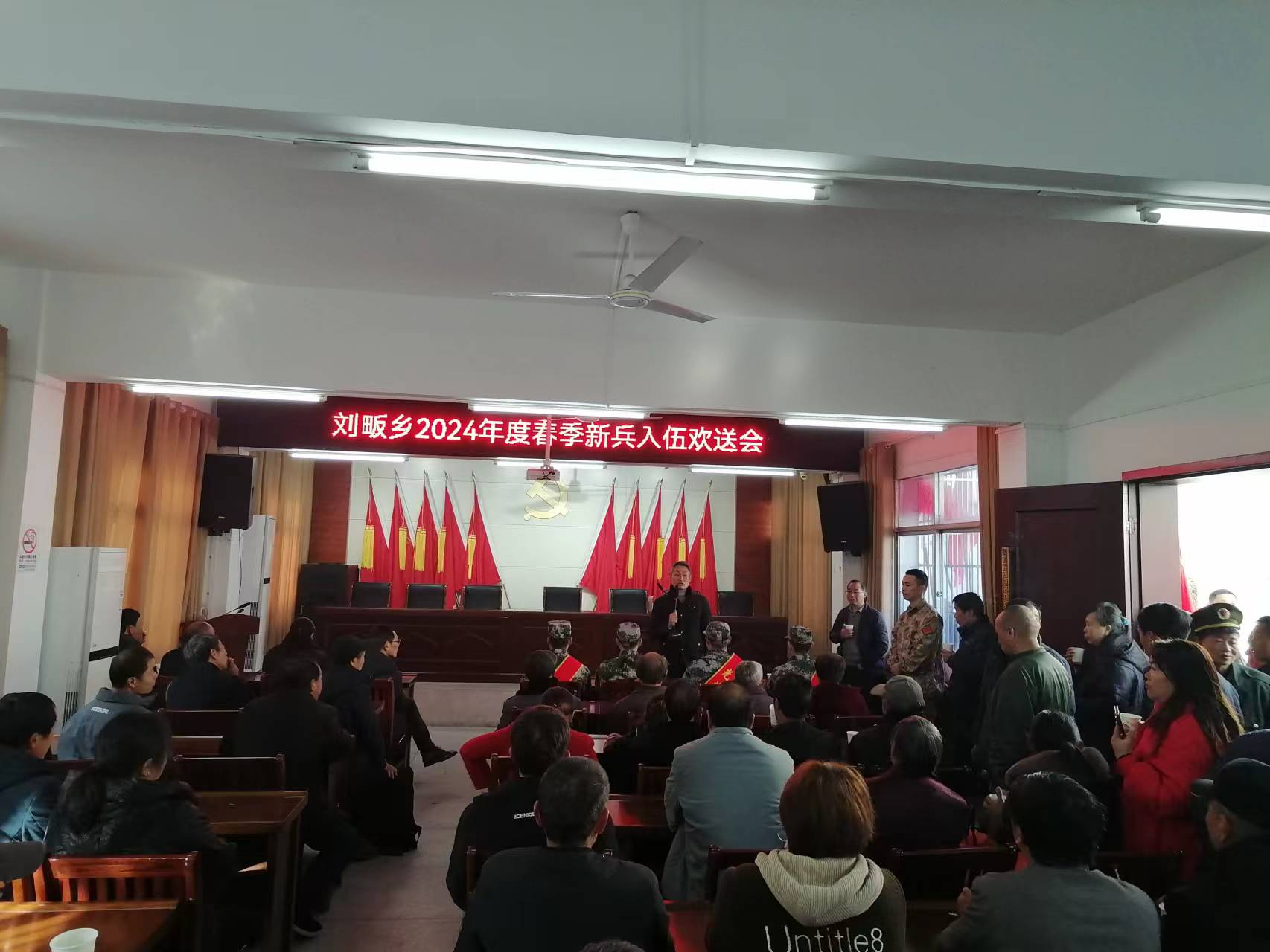 close风华正茂抒壮志,参军报国踏征程。为营造“一人参军,全家光荣”的浓厚氛围,3月11日,刘畈乡举行2024年度春季新兵入伍欢送会,为即将踏上军旅征程、践行保家卫国神圣使命的4名新兵送行。