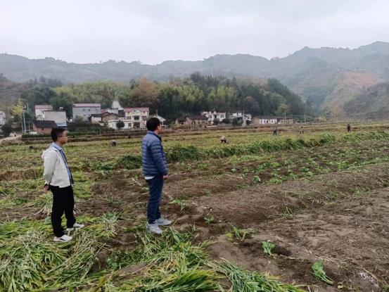 11月19日,乡党委委员、武装部长洪尚文,副乡长朱炜到马畈村油菜片指导栽种工作。