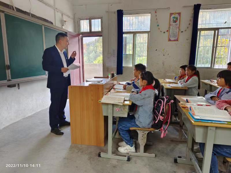 栗树村党总支部第一书记、驻村工作队队长陈阳走进课堂,带领同学们学习共青团知识。