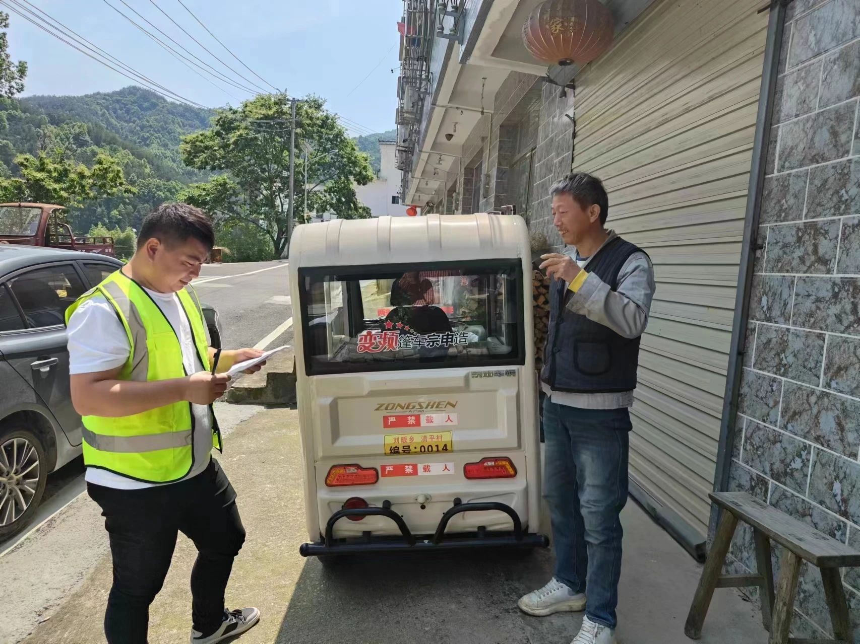 清平村交通安全员、劝导员分组入户,深入老年人家庭,面对面宣传交通安全知识。工作人员发放交通安全宣传资料,重点讲解基本的交通安全常识,如遵守交通信号、佩戴安全头盔、不逆行、不闯红灯等。在老年人电动三轮车醒目位置张贴禁止载人标志,提醒老年人骑行时不得违规载人。
