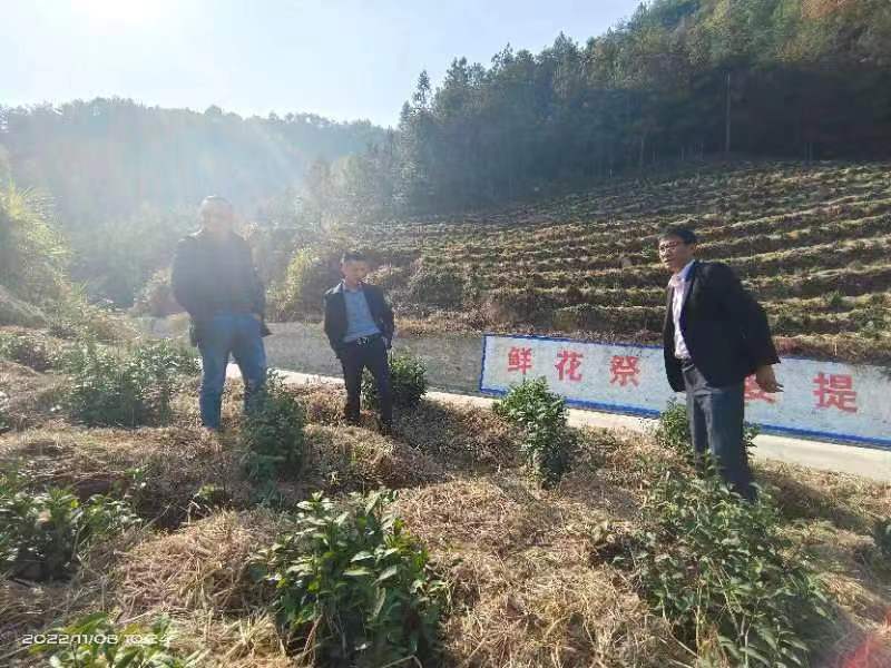 2022年11月8日,乐盛村驻村工作队、村“两委”查看茶园改造情况。