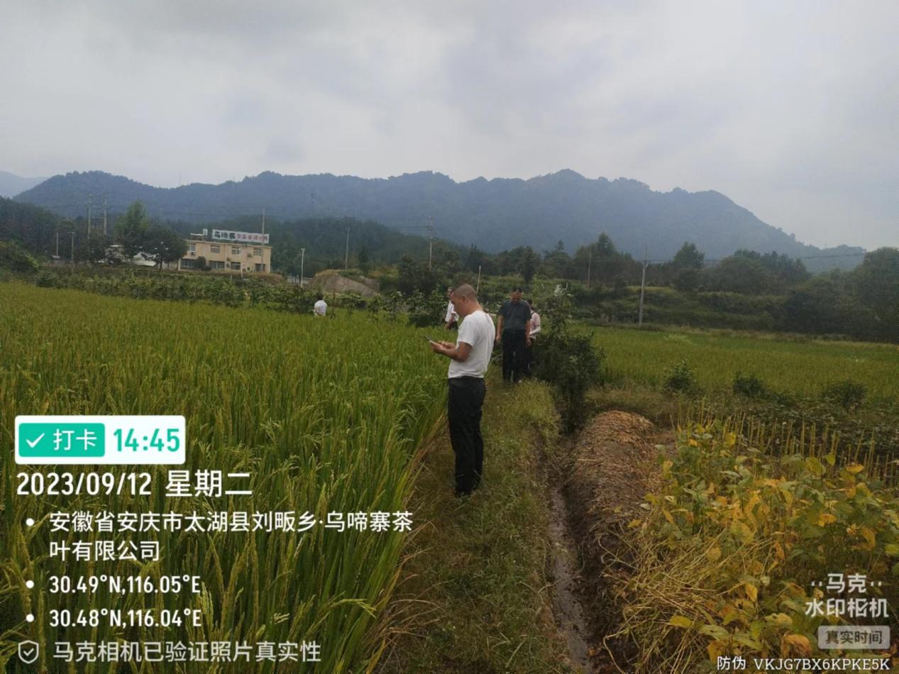 9月12日,刘畈乡农业农村服务中心、财政所、和保险公司人员到乐盛村实地核查水稻受灾情况。