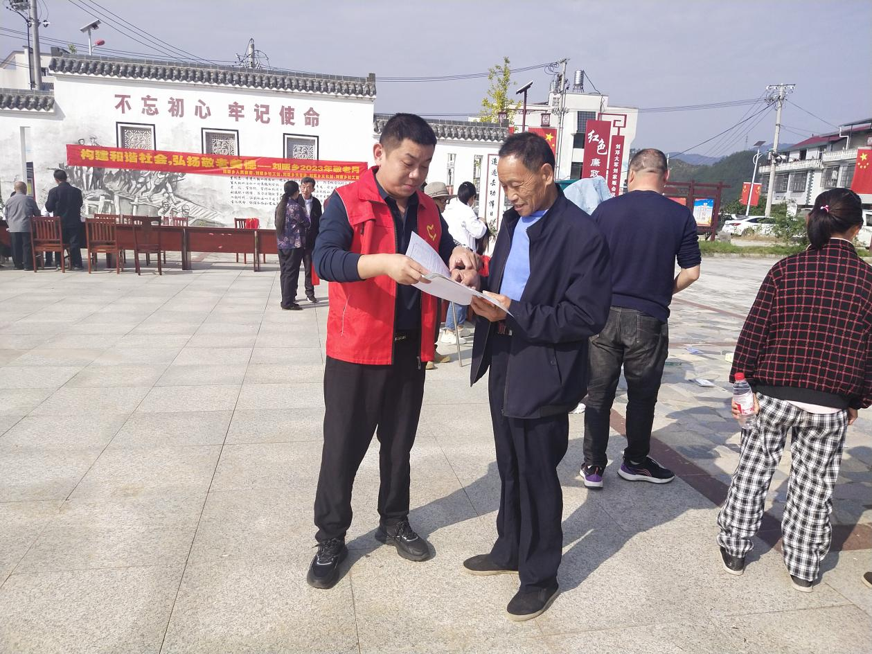 11月2日,刘畈乡刘畈村开展2023年度城乡居民医疗保险、居民养老保险参保续保宣传工作,在宣传过程中发放资料300余份。工作人员向还未参保、未缴费人员详细说明缴费时间、益处等相关政策,并解答了群众提出的问题。
