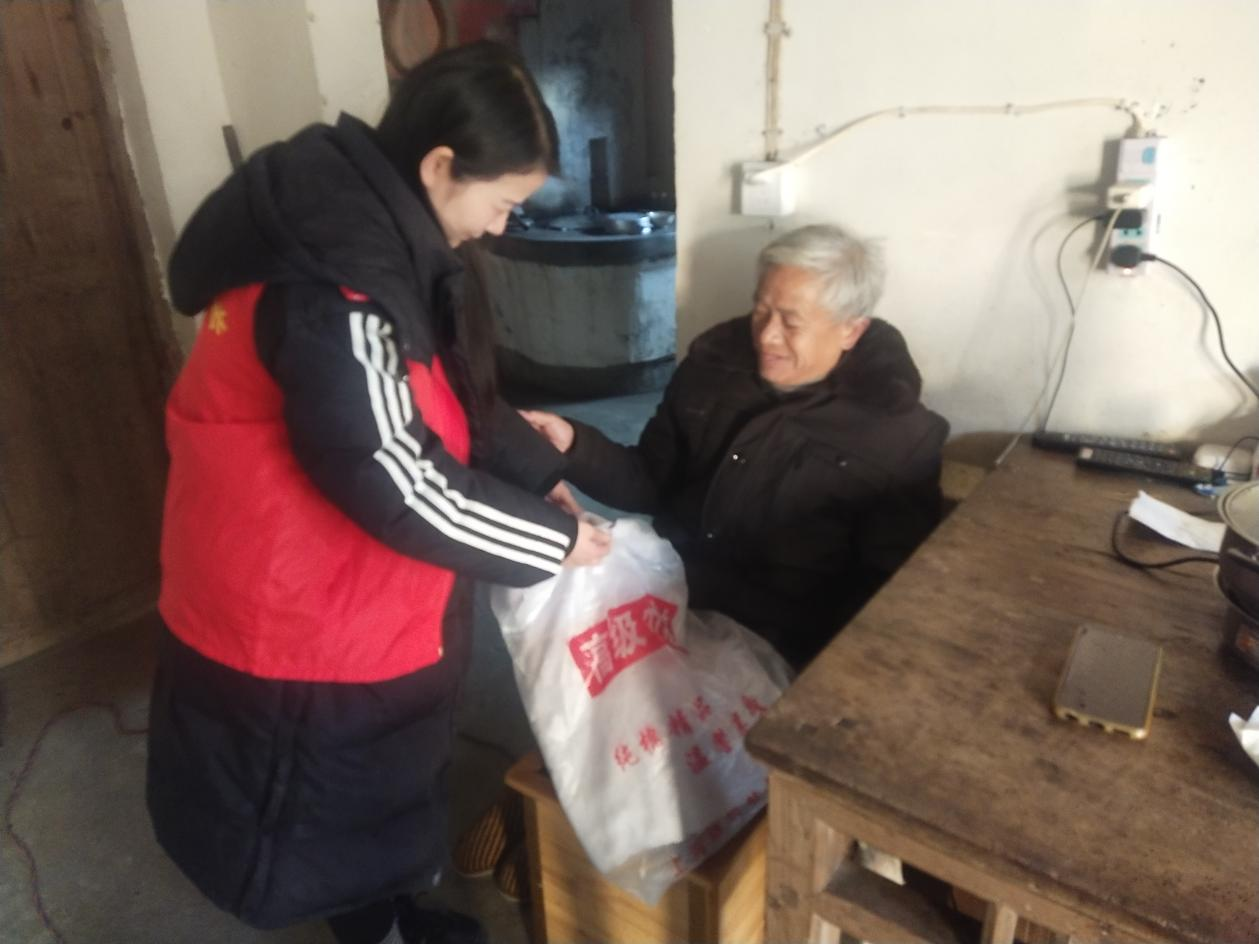 近期,我县新一轮低温雨雪冰冻天气来袭,为保障村内独居老人等困难群体平安度过这次灾害,刘畈村组织工作人员对独居老人进行走访慰问,并为他们送上慰问品。