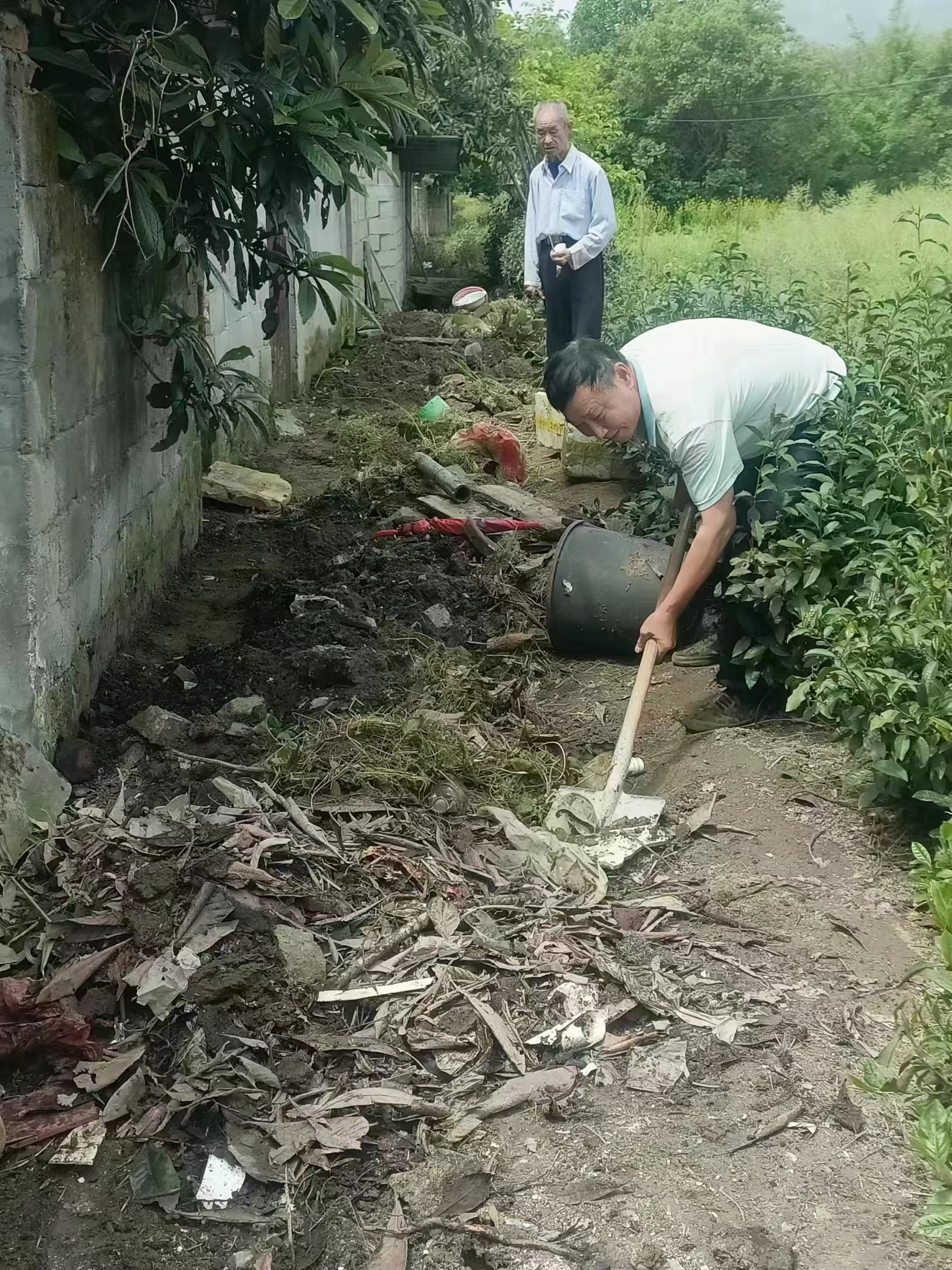 在刘畈村老屋组,有一位59岁的老党员胡水华,他积极参与和美乡村建设、人居环境整治,起到了示范表率作用。他主动参与环境整治,垃圾清理,拿着铁锹把屋后打扫得干干净净。