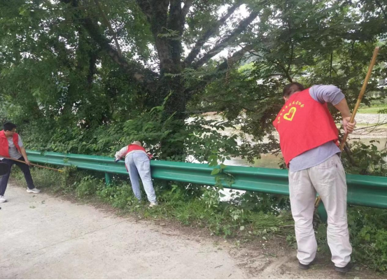 活动中,青年志愿者分工协作,手持割草机、镰刀、锄头和锯子等,齐心协力,全面清理主干道沿线杂草和杂树,清理出的杂草和杂树被集中处理。