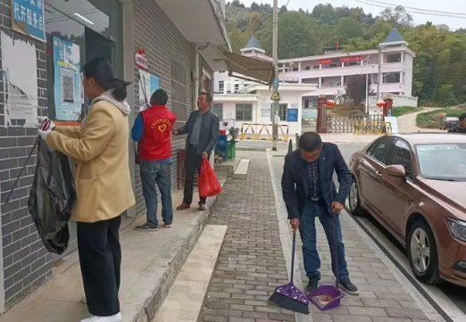 活动现场,伴随着淅淅沥沥的小雨点,大家分工合作、干劲十足。火红的党旗高高飘扬,党员胸前佩戴的党徽熠熠生辉,身穿红马甲的志愿者在全镇范围内随处可见,在昏暗的天色下显得格外亮眼。宣讲小分队进村入户发放“创建文明城市 争做文明市民”倡议书,向群众宣讲社会主义核心价值观、“文明健康 绿色环保”、文明创建常识、文明交通、文明养犬、电动车上牌等内容;环境整治小分队聚焦绿化带、卫生死角等位置清扫烟头、纸屑、动物粪便等垃圾,无死角清理街边“牛皮癣”小广告;秩序整治小分队在主干道开展巡查,规范机动车、非机动车停放,查看有无随地吐痰、毁绿种菜、乱搭乱建、乱晾晒等现象并及时整改到位。