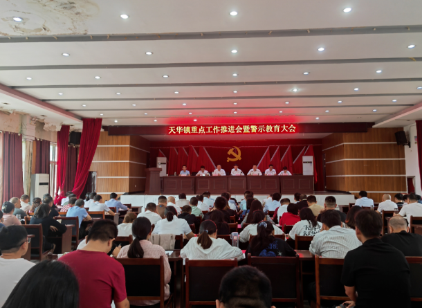close9月22日下午,天华镇召开重点工作推进会暨警示教育大会。镇全体机关干部、各村两委全体成员和镇直单位主要负责人共计100余人参加。