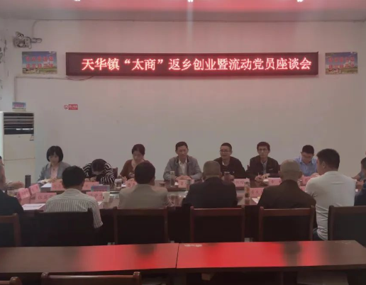 close10月3日,天华镇召开“太商”返乡创业暨流动党员座谈会,会议邀请天华籍在外流动党员、在外返乡乡贤共聚一堂畅叙乡情、共谋发展。天华镇党委主要负责同志、分管负责同志以及相关负责同志参加会议。