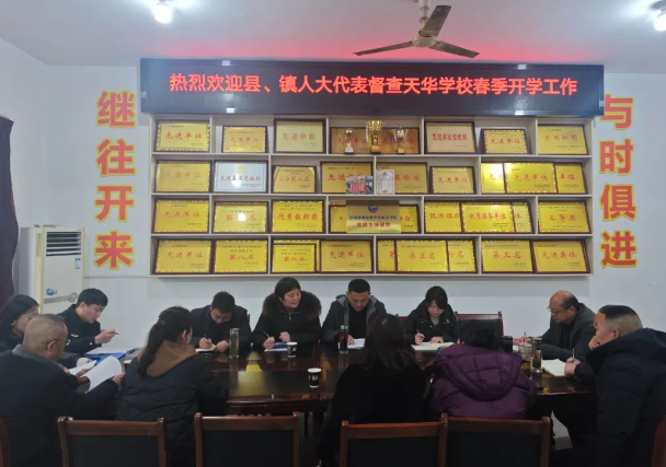 2月29日,天华镇人大组织开展天华学校春季开学工作督查,镇人大主席、李杜代表联络站站内代表、镇应急办与市场监管所工作人员参与督查。
