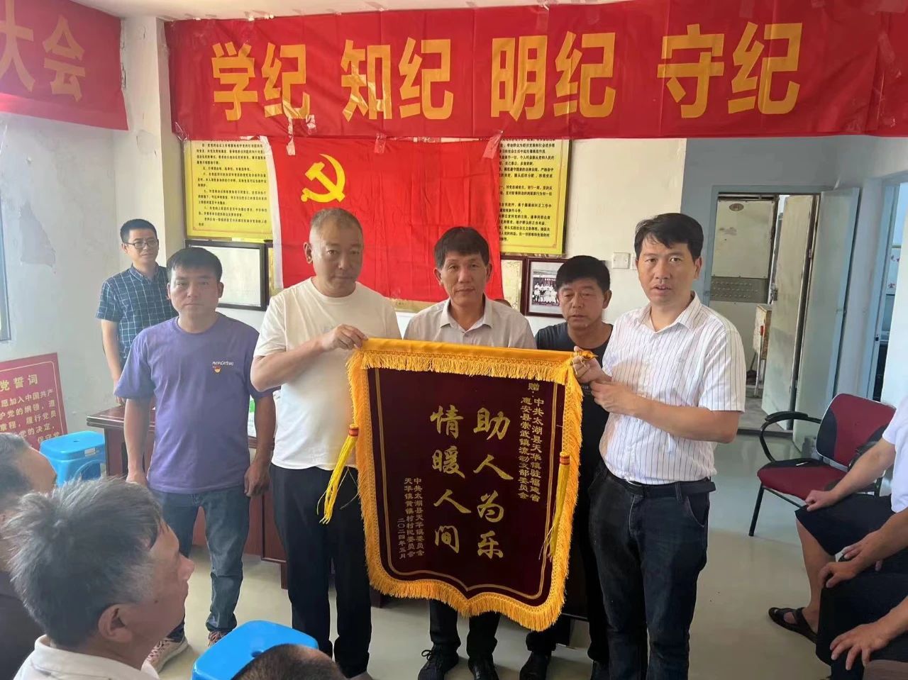 会上黄镇村党总支、村委会还向崇武流动党支部赠送一面“助人为乐 情暖人间”锦旗,用以感谢支部党员同志们踊跃捐款,为黄镇村孤困儿童奉献爱心、传递温暖。