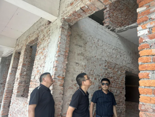 在平岭村,一行人就乡村振兴工作进行调研,一行人查看了平岭村休闲民宿工程项目施工现场,详细询问了工程进度、施工质量和安全保障措施。