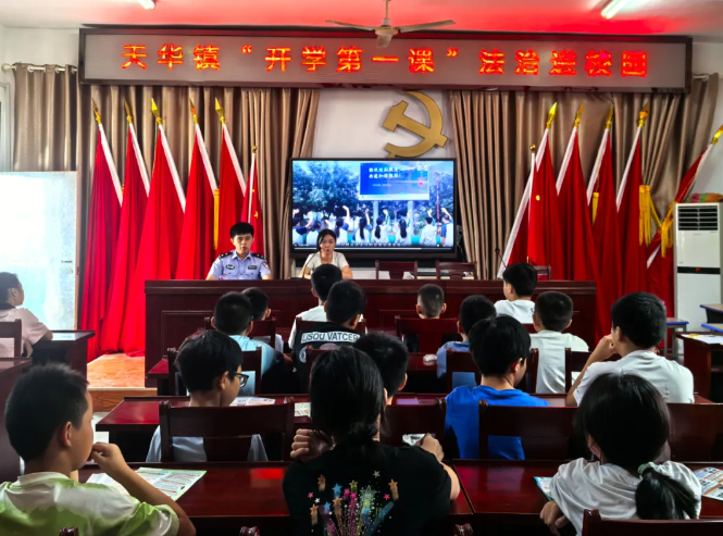 close为进一步增强未成年人法律意识,营造和谐安全的校园环境,9月12日,天华镇妇联、综治、关工委、司法所、公安派出所联合开展法治安全进校园活动,为学生们开展精彩的“开学第一课”。