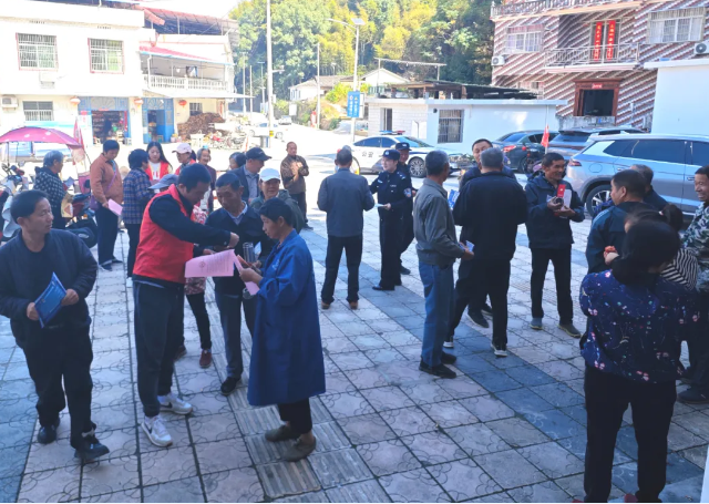 close为进一步提升全镇人民群众对扫黑除恶、反邪教、反电信网络诈骗工作的知晓率、参与率,全力推进平安天华建设,近日,天华镇平安建设和应急管理办、派出所、妇联联合开展“普法宣传进乡村”活动。