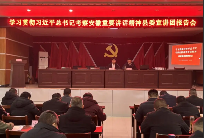 宣讲从充分认识习近平总书记考察安徽重要讲话精神的重大意义、深刻领会习近平总书记考察安徽重要讲话精神的丰富内涵、切实推动习近平总书记考察安徽重要讲话精神落地生根三个方面,对习近平总书记考察安徽重要讲话精神进行了系统阐释和深入解读,既有理论高度,又有思想深度,更有实践广度,对全镇上下准确理解和全面把握习近平总书记考察安徽重要讲话精神具有指导性意义。