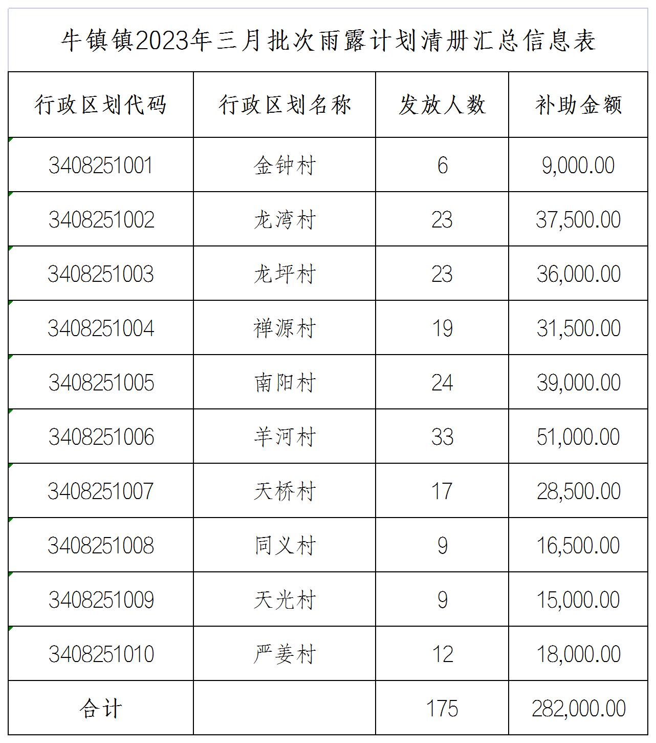 牛镇镇2023年三月批次雨露计划清册汇总信息表
