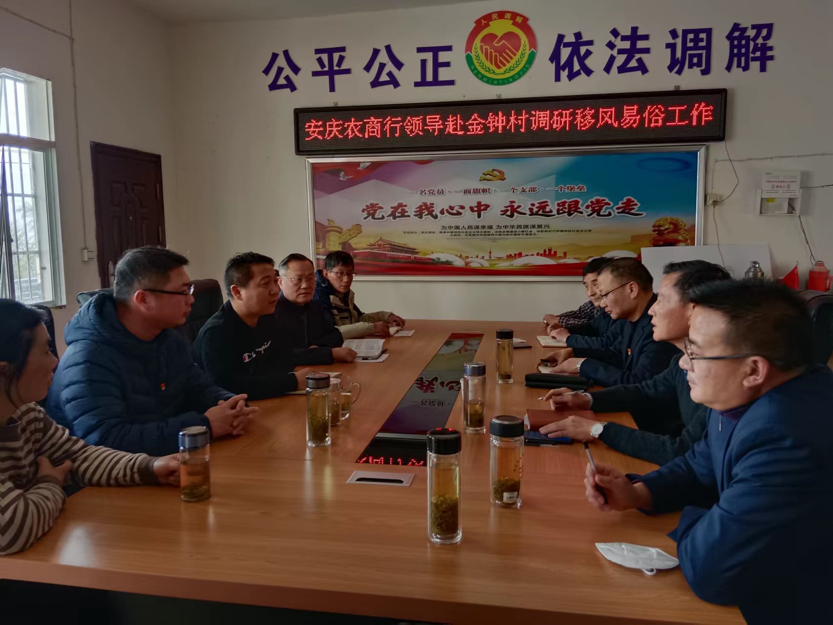 安庆农商行叶韧董事长一行赴金钟村调研乡村振兴工作并给金钟村党员上党课