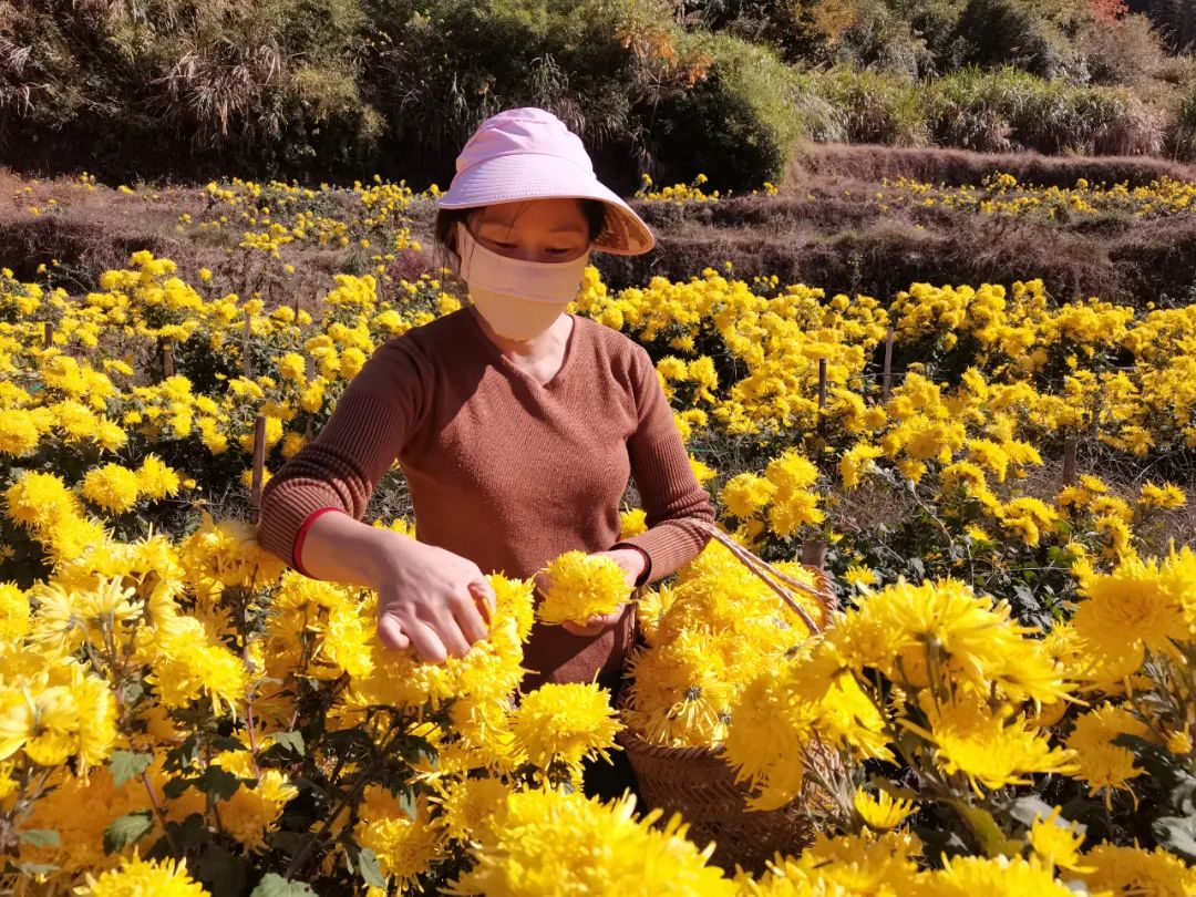 “菊花的药效和作用很多,深受消费者的喜爱。菊花采摘既为村集体经济增收,也能为我们补贴一些生活开销。”村民张阿姨乐呵呵地说道。