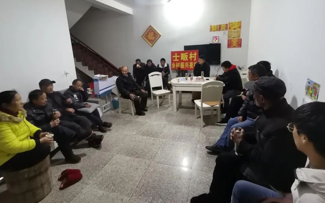 2月8日,汤泉乡士畈村王湾组王维家宅,灯火通明,组民欢聚一堂举办乡村振兴夜校,话民生、谋发展。驻村干部和村“两委”成员参加。