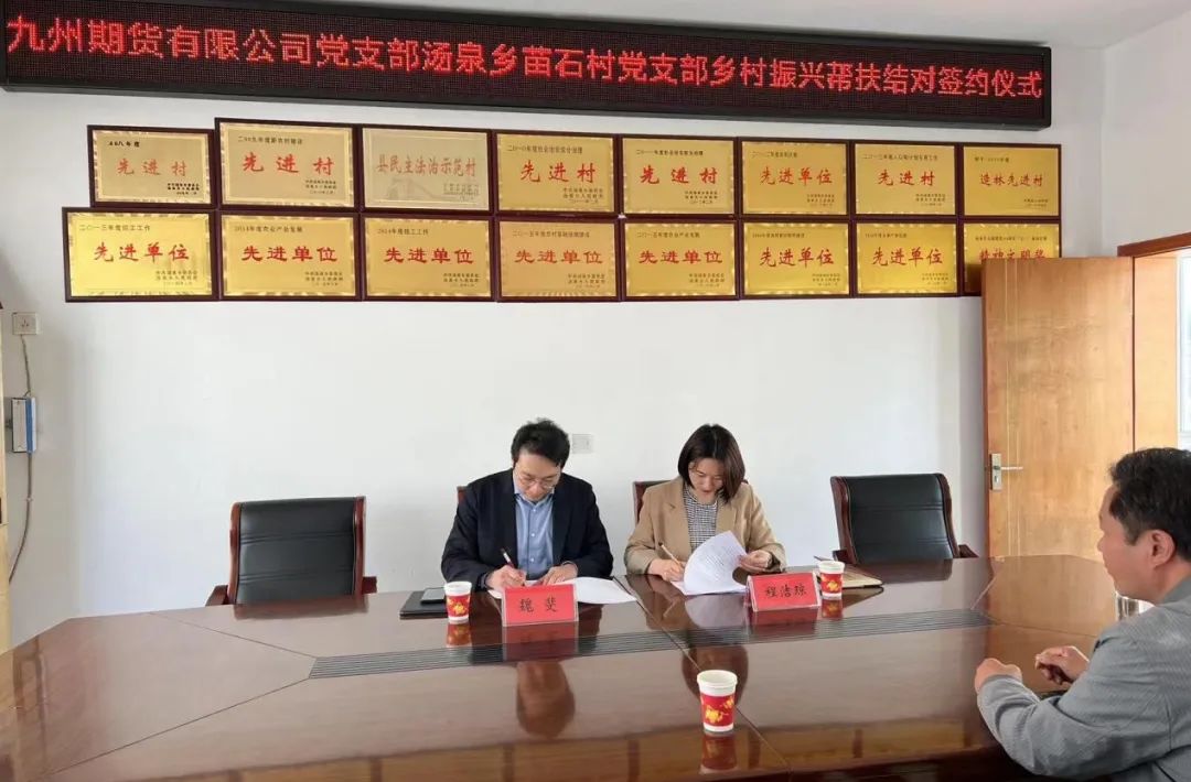 调研前,九州期货与汤泉乡签署了乡村振兴工作合作协议、产业帮扶合作协议和党建共建合作协议,为汤泉乡巩固拓展脱贫攻坚成果同乡村振兴有效衔接添砖加瓦,促进汤泉乡经济社会发展。签约结束后,九州期货有限公司合规与风险管理部负责人刘钰同志就非法集资知识对乡村两级干部及部分群众开展培训。
