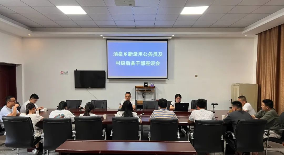 7月25日,汤泉乡召开新录用公务员及村级后备干部座谈会。该乡组织委员、党建办工作人员、新录用公务员及村级后备干部参加会议。